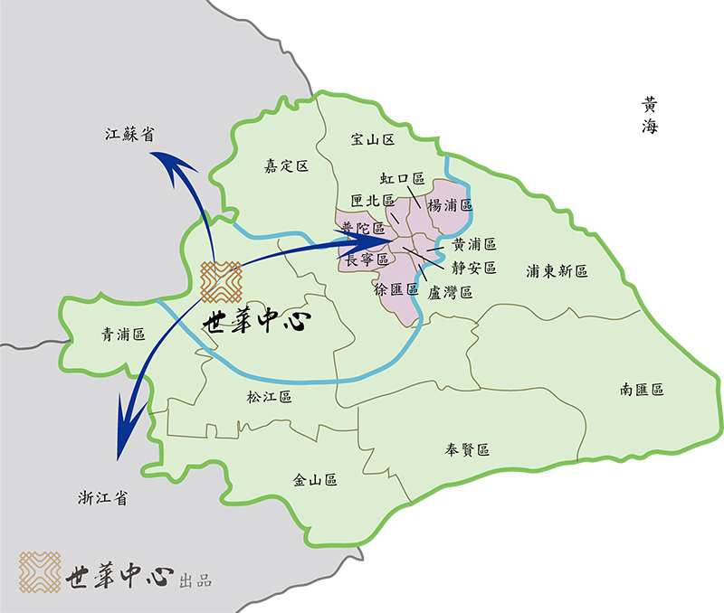 世華中心位於上海西郊青浦區內,青浦共分為三個區域,分別為城區、東翼與西翼。世華中心正位於青浦核心區域CBD,位於崧澤大道與外青松公路之交界,往西有上海最大的淡水湖-澱山湖,擁有豐富的休閒旅遊、生態居住等資源,往東則是依託虹橋商務區,擁有全國最大的國家會展中心,重點開發會展產業、總部經濟與文化創意產業等區域優勢。